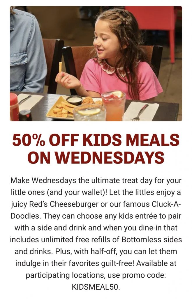 50% Off Kids Meals on Wednesdays