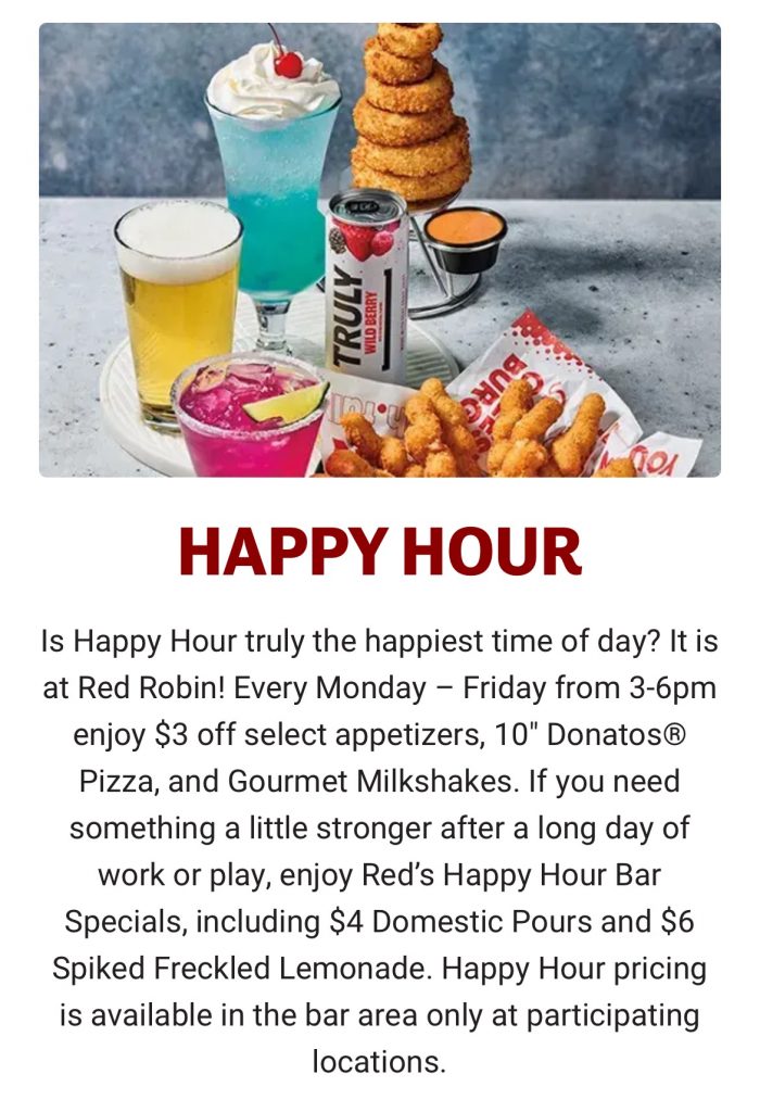 Happy Hour $3 off select appetizers Monday-Friday 3-6 pm